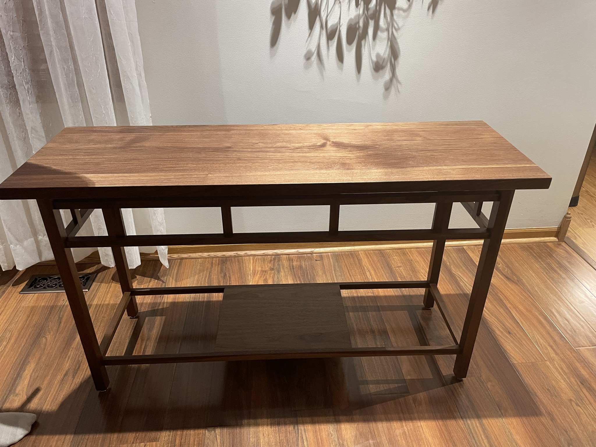 Product gallery Chevron Cutting Board Bread Board Sauce Dip Board Cherry Platter Board Front View Walnut Stools Walnut Bar Stool Horse Tack Trunk